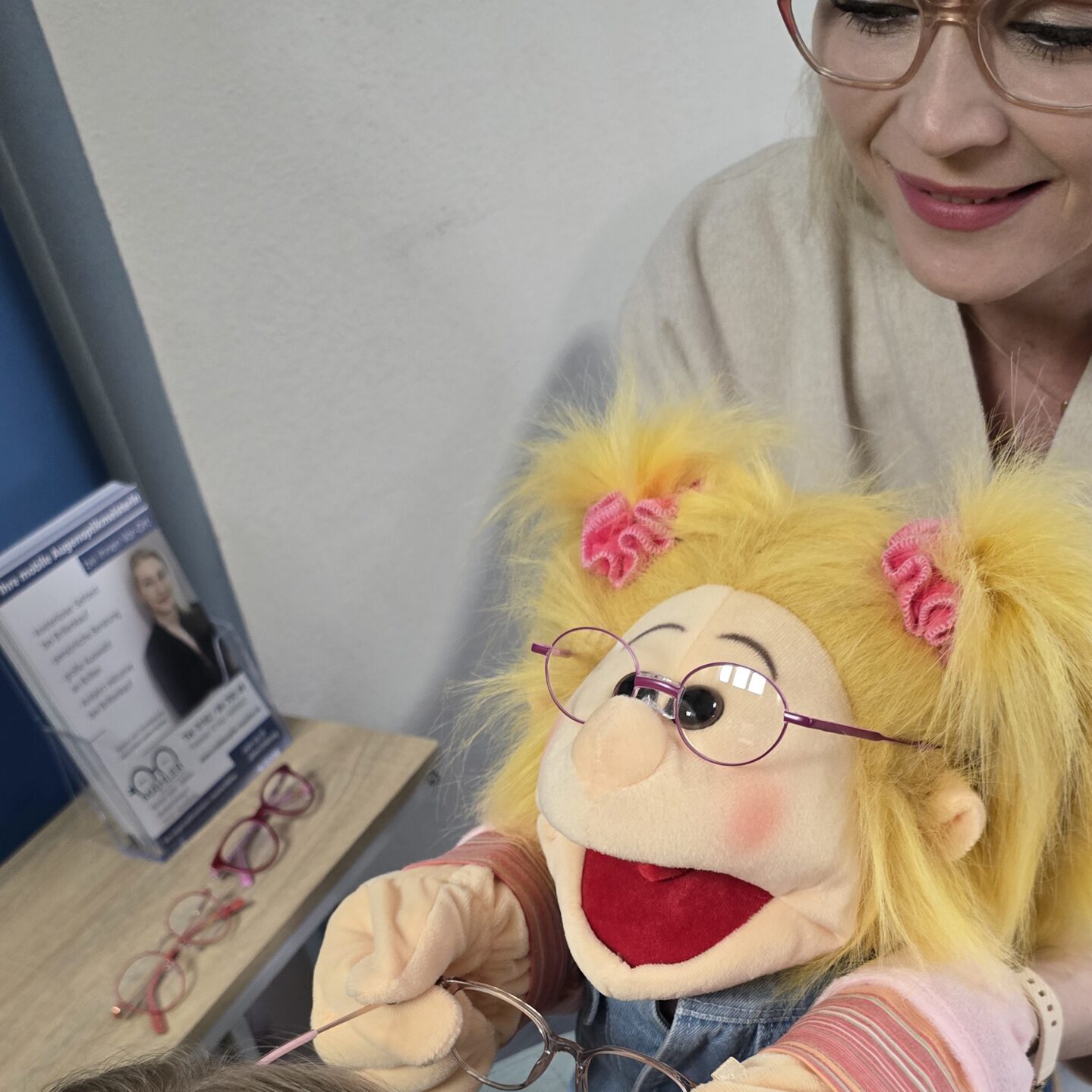 Bei Ihnen zu Hause finden wir in gewohnter Umgebung Ihres Kindes gemeinsam die passende Brille. Unterstützt werde ich dabei von meiner Assistentin, der Puppe „Bonni“. Sie liebt Brillen und hat immer den Durchblick. Je besser die Brille einem Kind gefällt, desto lieber wird sie auch getragen werden.